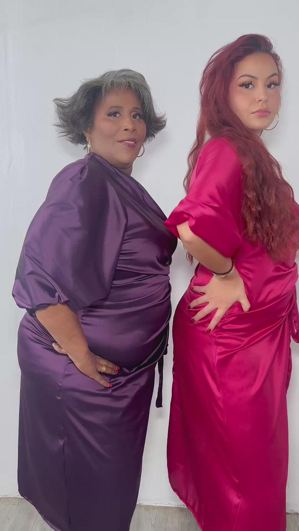 Sa matière satinée lisse et brillante épouse parfaitement la silhouette, créant un look sophistiqué et glamour. Elle est en 2 couleurs : violet et rose fuchsia. Vous serez la plus belle pour les fêtes, ou un évènement.